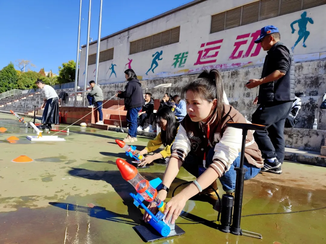 2024年昆明市五华区教师科创能力 评比展示活动成功举办 DIY小船 自己动手造一艘小船,看谁跑得又快又直! 水火箭打靶 水火箭打靶,看谁打得准! 模拟飞行 用真实的环境数据,在电脑上体验飞行器的操控,完成竞速比赛。 精准投“蛋” 看谁制作的保护装置设计最巧妙,保护鸡蛋不碎裂,还又轻又小。 习近平总书记提出:“提高中华民族创新能力,把我国建设成为创新型国家,关键在人才,希望在青少年。要坚持从青少年抓起,为国家培养更多创新型科技后备人才”。 教师的创新能力是科创教育发展的源泉和进步的动力,此次教师创新能力评比展示活动的成功举办,对加强五华区中小学科创教师师资队伍建设,推动五华区各学校科技创新工作的全面发展发挥了积极的促进作用。 五华区切实在教育“双减”中做好科学教育的加法,推动中小学科学教育实验区建设,努力提高学生科学素质,激励中小学生树立科技报国远大志向。 编审:罗凤莲 终审:王慧卿